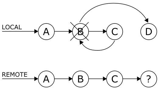 This example uses five commits A,B,C,D,E, which were committed in order: A-B-C-D-E.