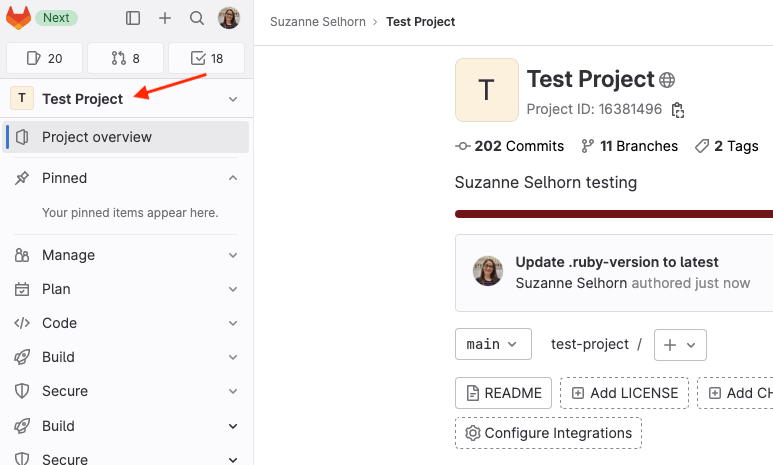When you find the project you want, select the project name. The left sidebar now shows project-specific options.