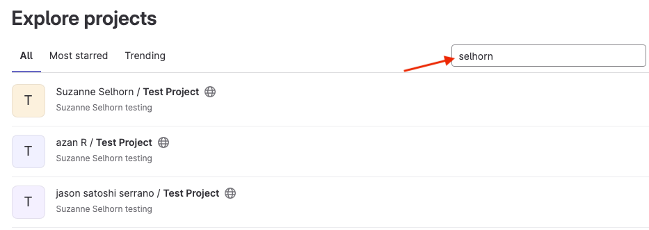 On the right, above the list of projects, type search criteria. The search finds projects with a matching description.
