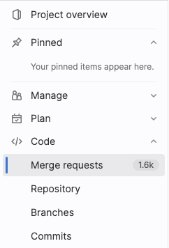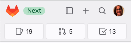 At the top of the left sidebar are several shortcuts. Use these shortcuts to show and hide the left sidebar, create new items, search, and view your profile. You can also view your list of issues, merge requests, and to-do items.